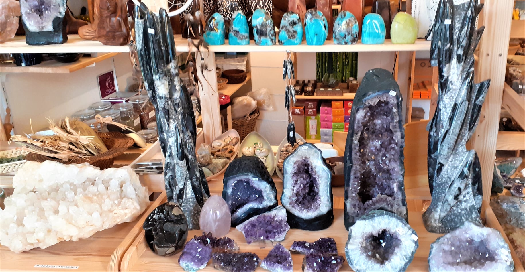 Unser Warenangebot: Edelsteinschmuck wie Armbänder, Anhänger und Ketten. Steine geschliffen, roh, getrommelt, Kristalle, Räucherstäbchen und Räucherwerk. Bio Duftöle und Bio Seifen ( Aleppo Seifen ) und vieles mehr